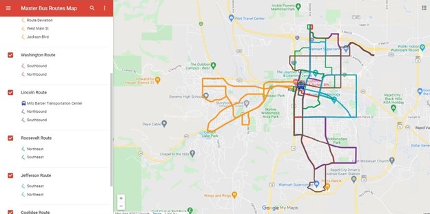 Before operations begin, I must conduct preliminary, primary, and secondary research to record variables such as population, bus routes (Figure 2), traffic flow, topography, average age, access to transportation, zoning, etc. Additionally, I will observe location of medical facilities, pharmacies, grocery stores, banks, nursing homes, and other public service organizations and compare them to fixed points throughout the Rapid City region. Once operational, transportation services will be evaluated through surveys and assessments at the beginning and end of each program in order to monitor client progression and overall community statistics. I’ll eventually introduce our own CRM (customer relationship management software) database, which develops progress reports and logic models, providing funders, staff, board of directors, and public comprehensive data regarding recipient activities and outcomes. This will allow me to successfully track our volunteers, interns, donor information, grant information, and other programs.